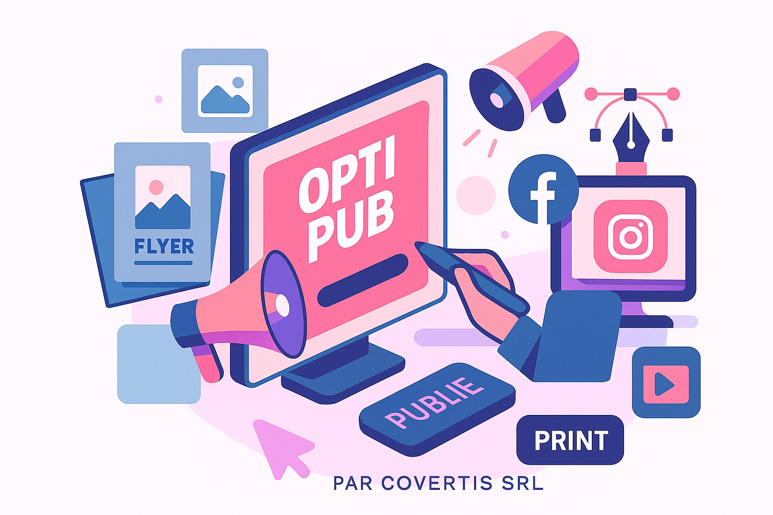 OptiPub est le service de création visuelle de Covertis dédié aux affiches, flyers, publications réseaux sociaux et visuels promotionnels. Grâce à une approche créative et cohérente, OptiPub conçoit des images percutantes qui captent l’attention et renforcent votre message.
